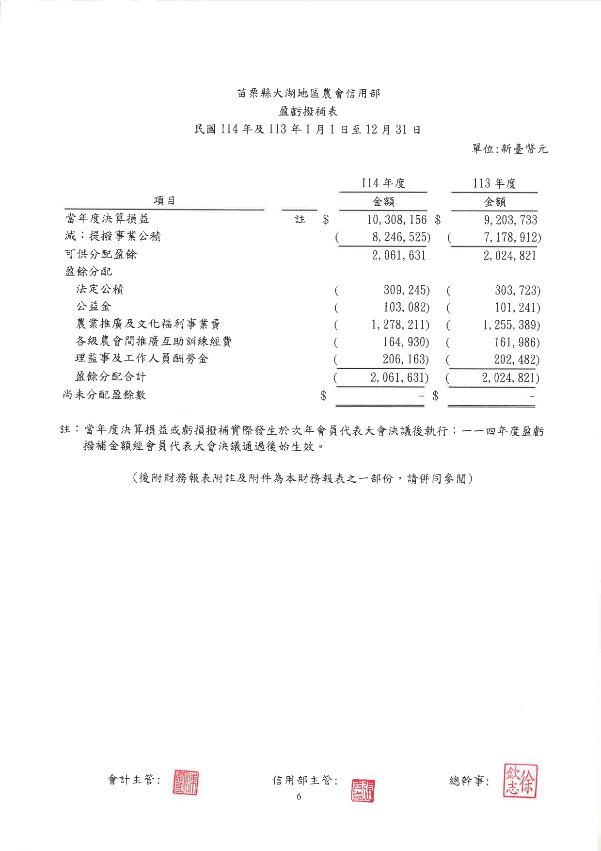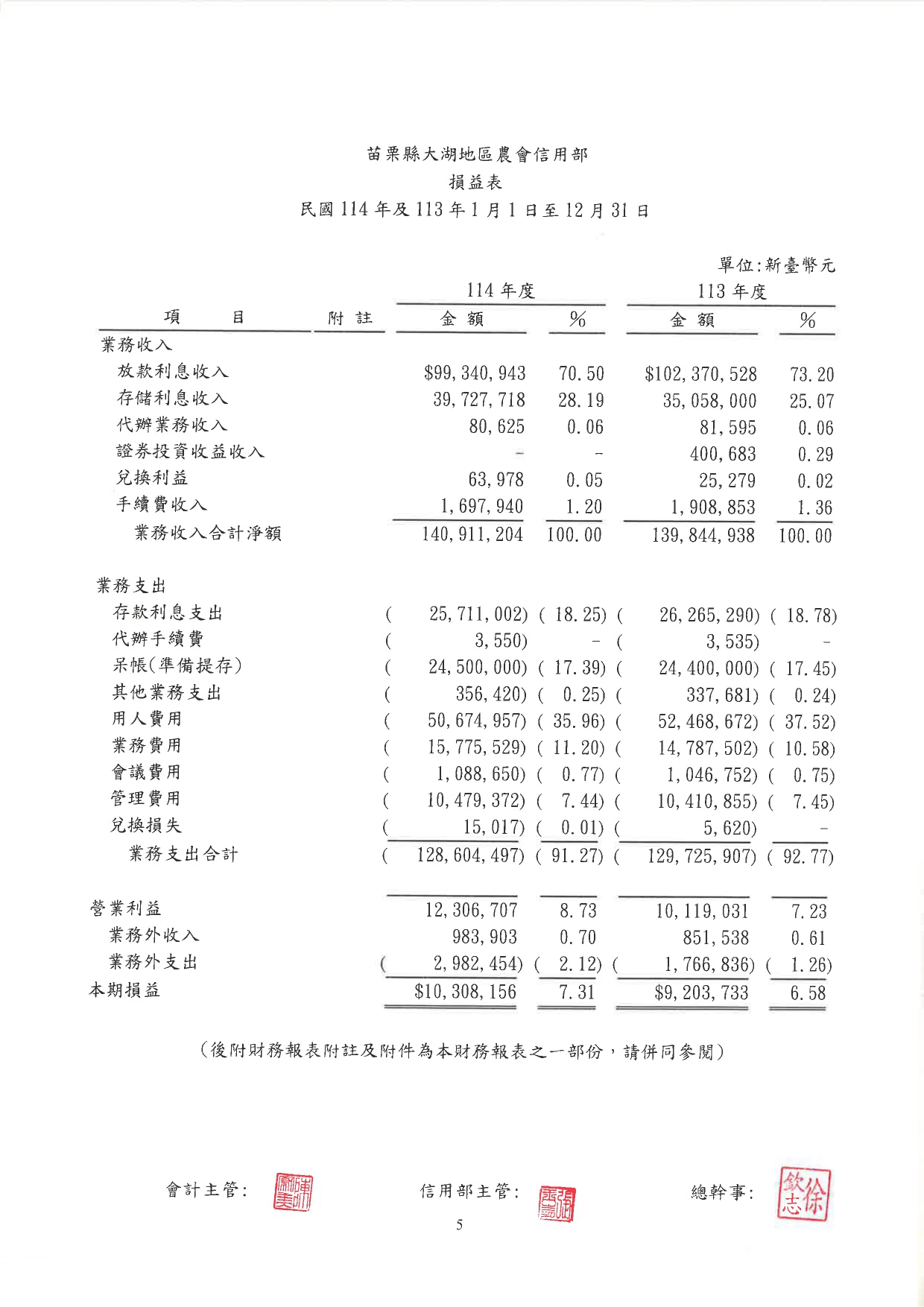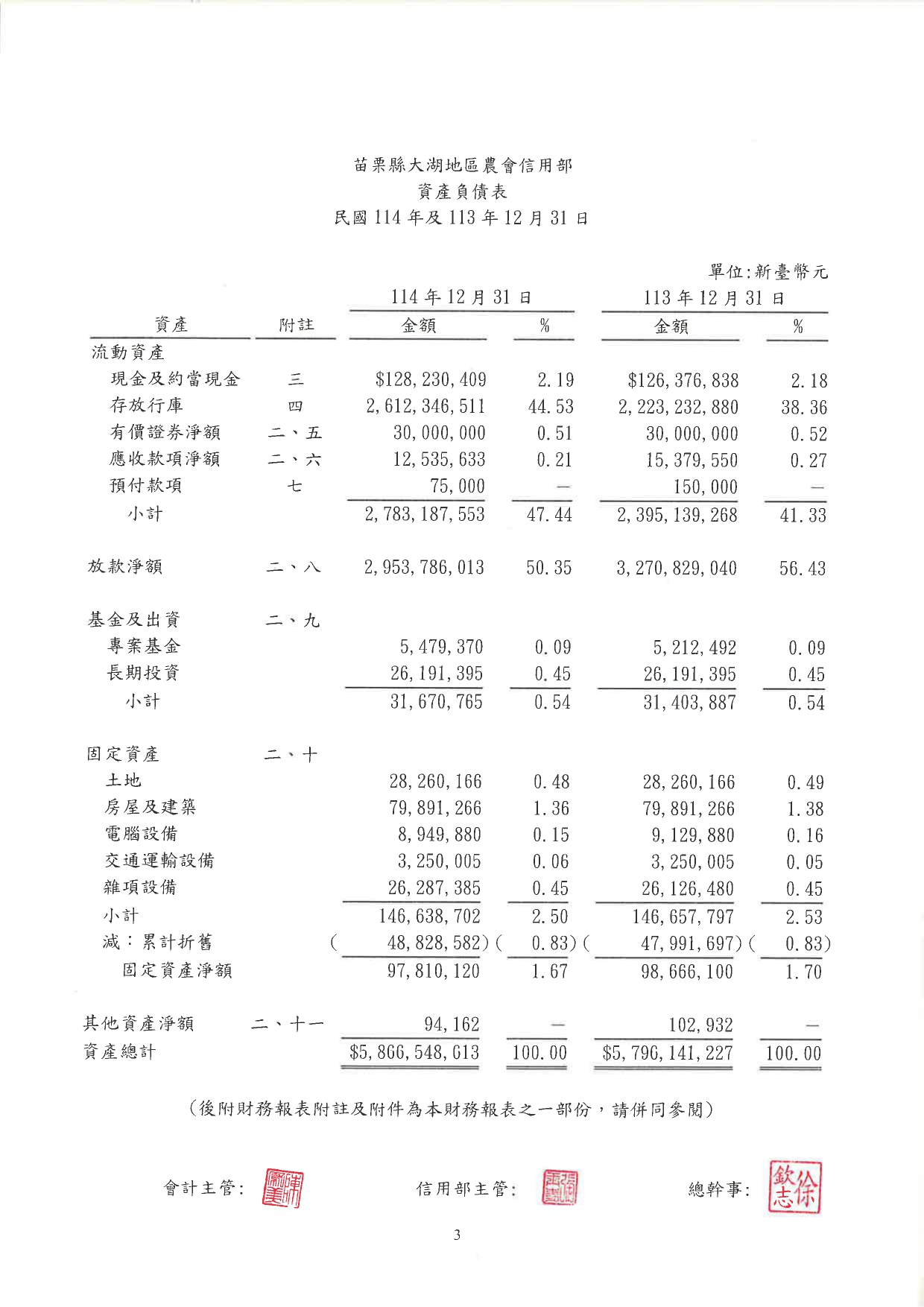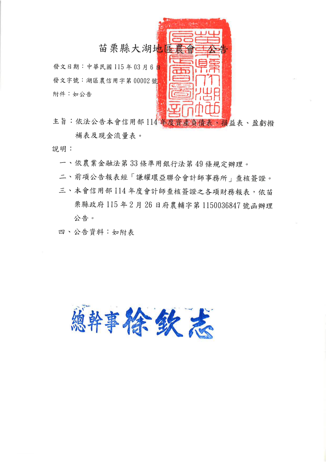【公告】114年信用部財報