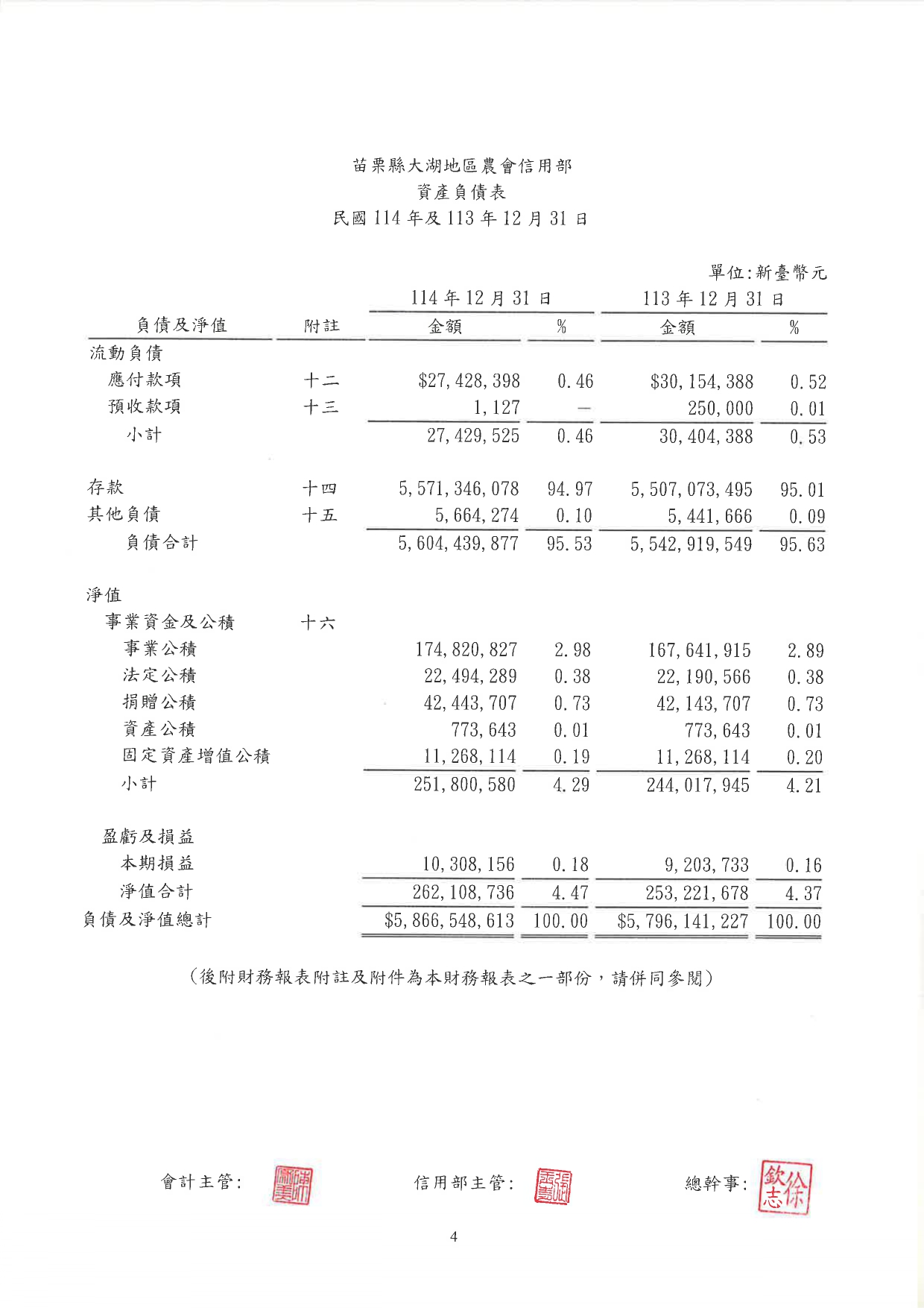 > 【公告】114年信用部財報