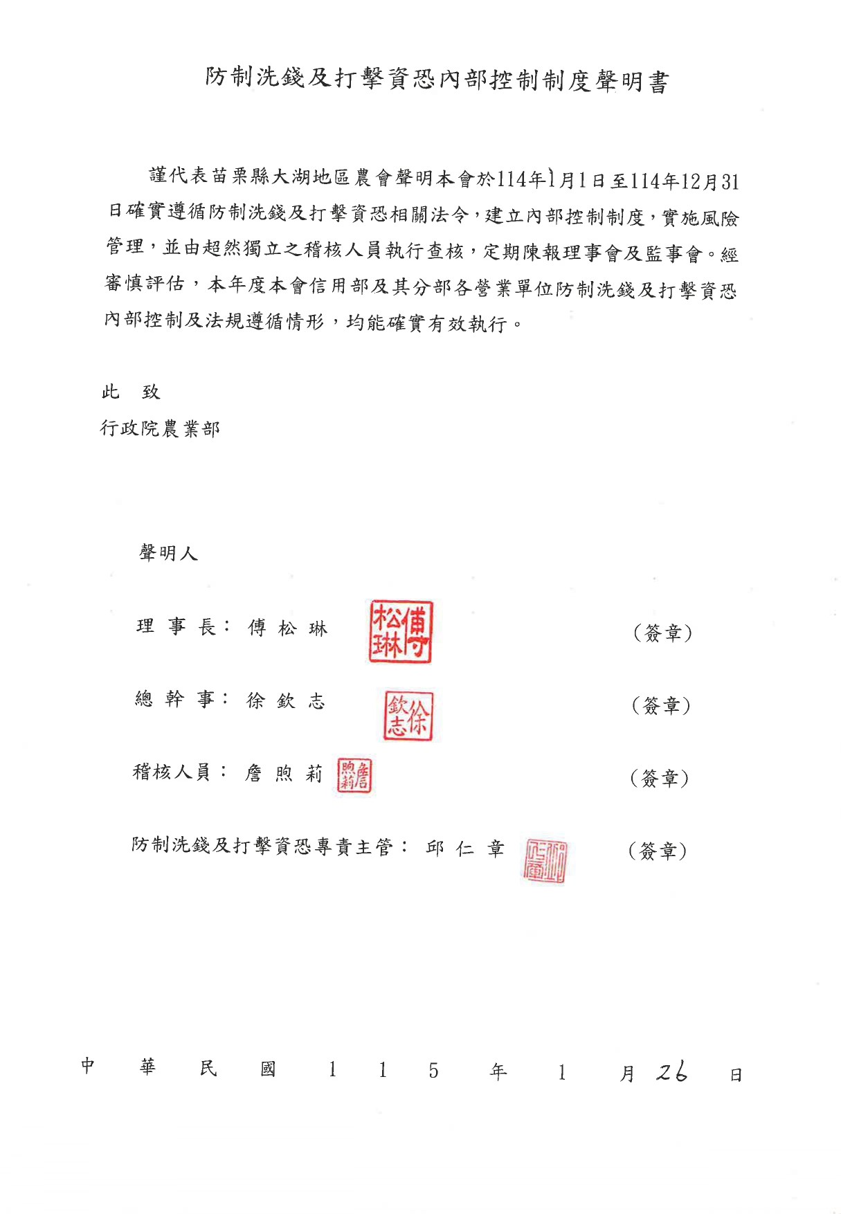 首頁 ﹥ 最新消息 > 信用部 > 【公告】114年度-防制洗錢及打擊資恐內部控制制度聲明書 2026-02-10 相關連結:https://www.dahufarm.com/custom_140394.html 上一個 回列表 下一個